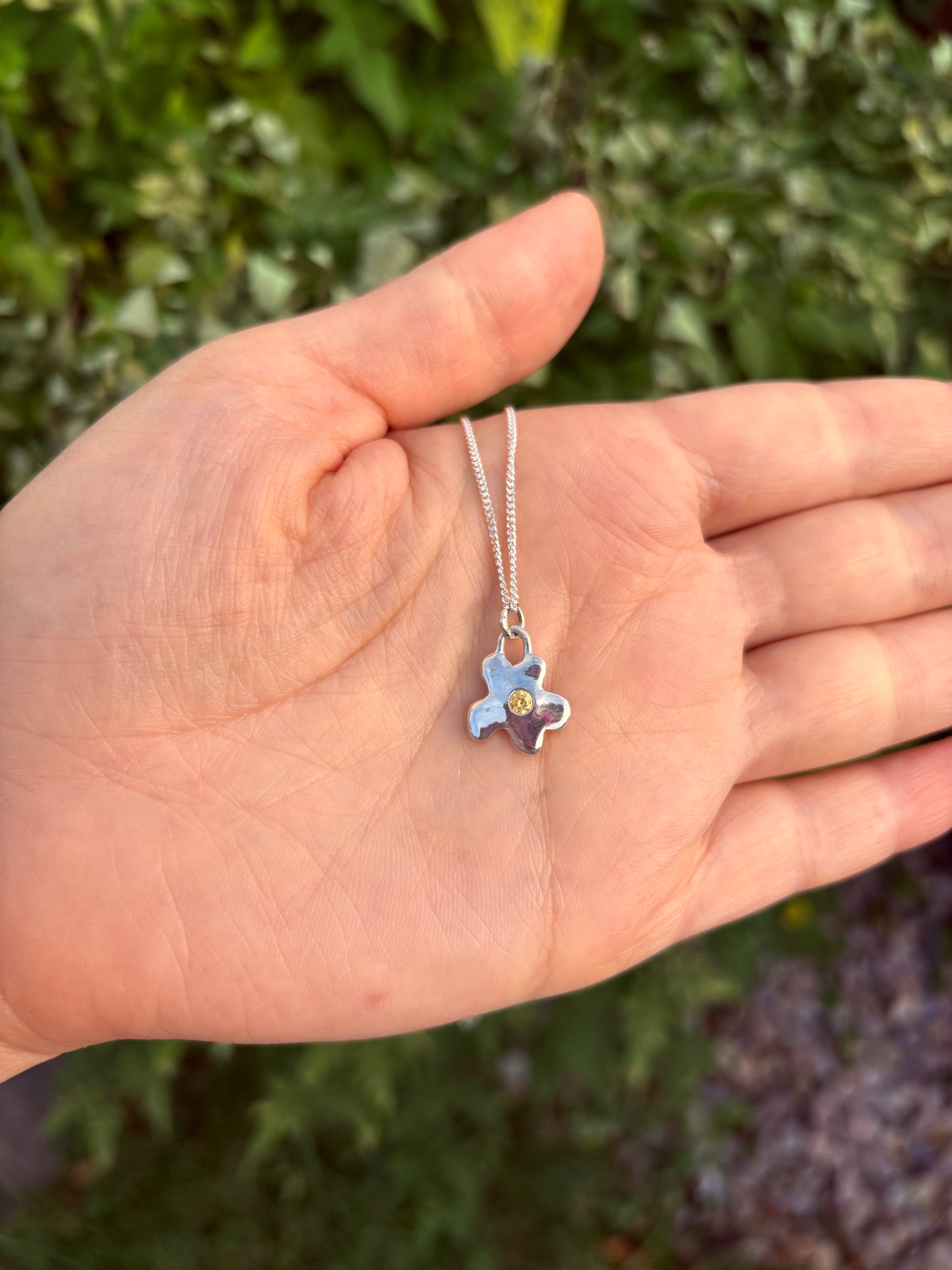 Each flower is hand-drawn by me and crafted in silver.